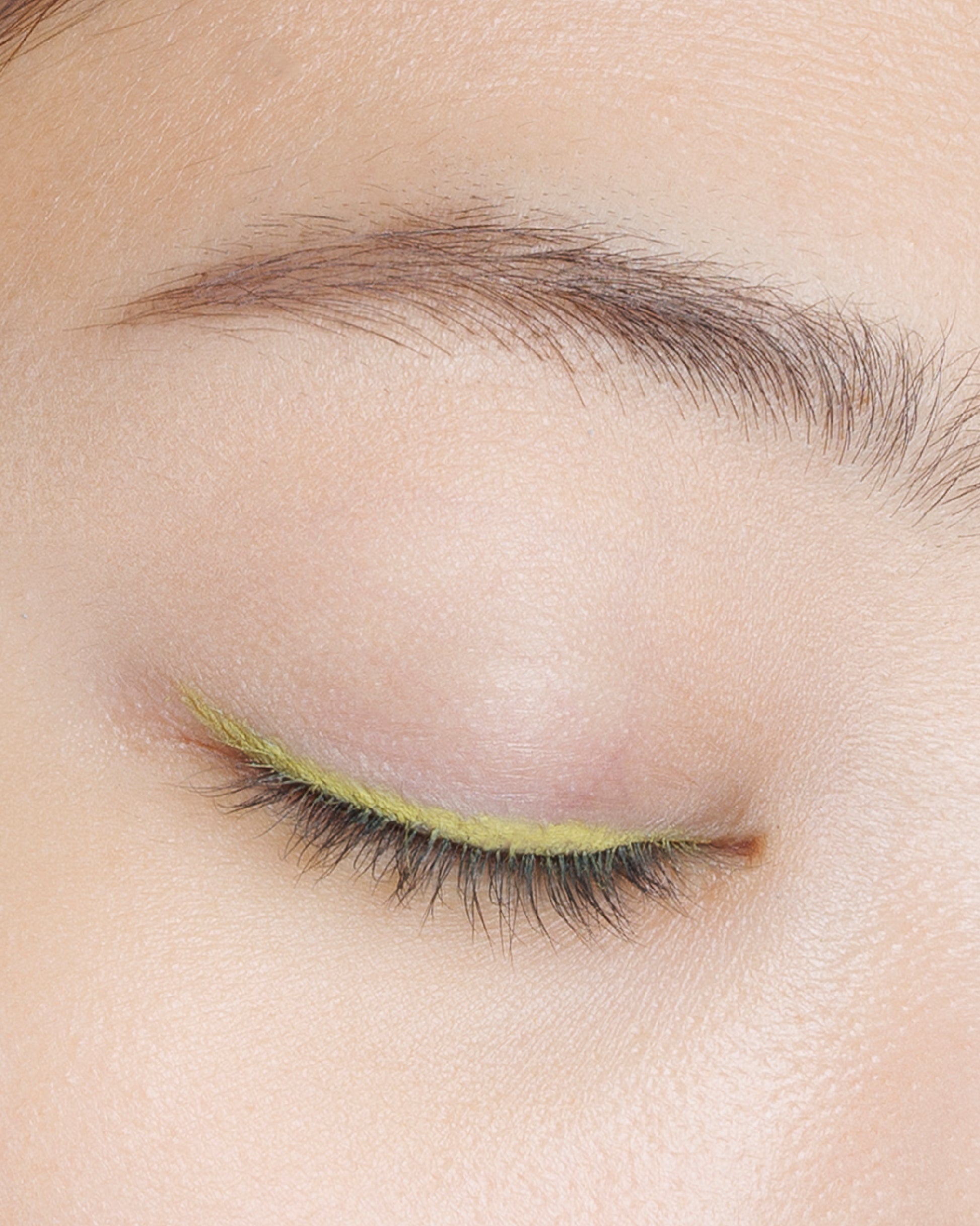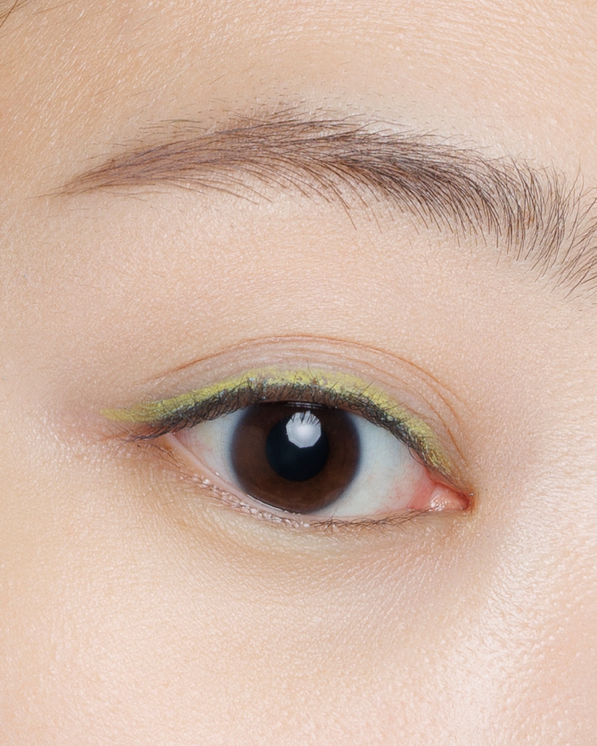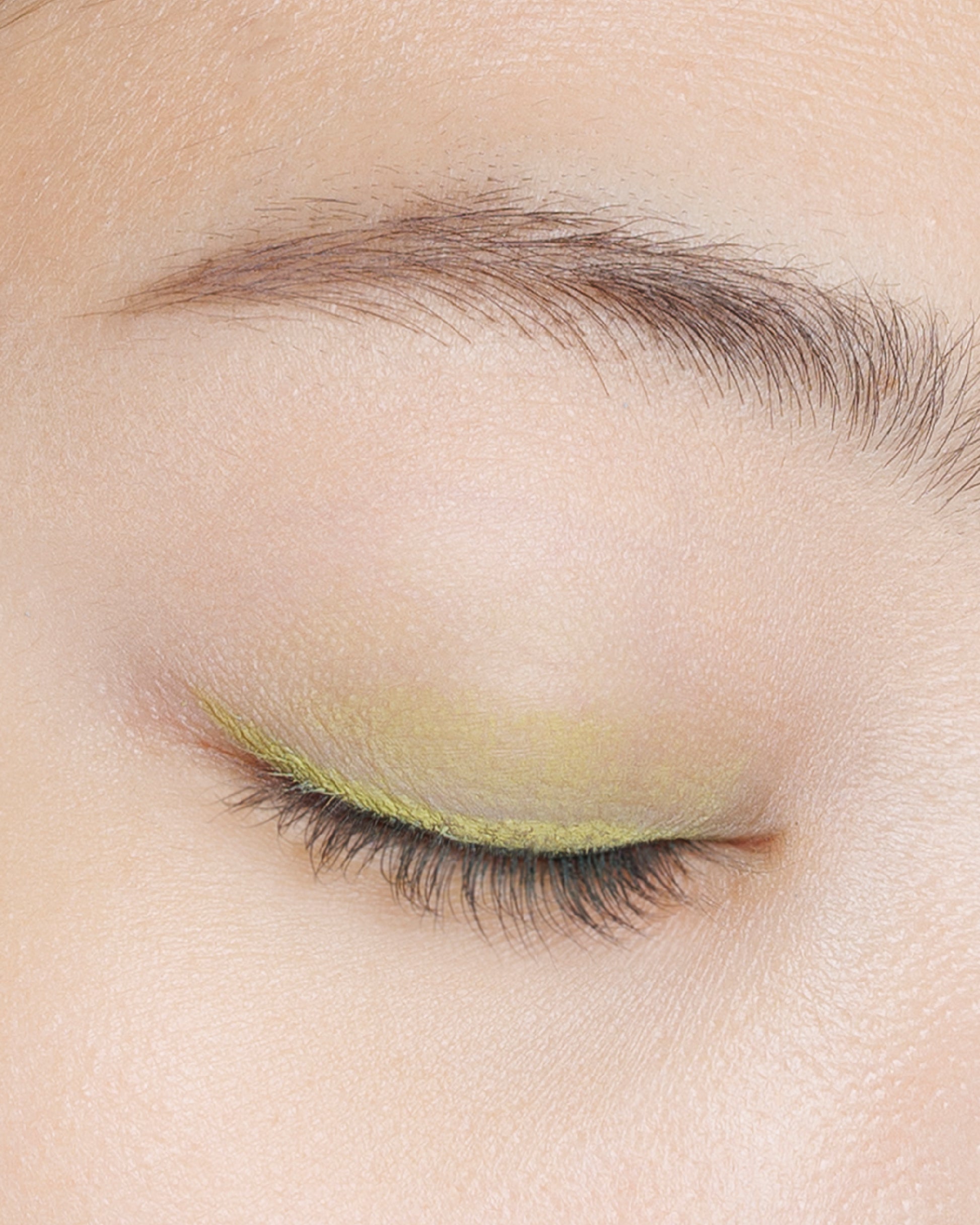 ライムイエロー。グリーンニュアンスを含んだ大人イエローが目元でお洒落に主張。